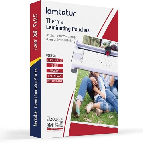 Thermal Laminating Pouches 9″x11.5″ Inches, Holds 8.5 x 11 Inch Sheets,5mil 200Pack Hot Laminate Films, Clear Laminator Papers, Letter Size Lamination Sheets (125Mic 200Pcs)