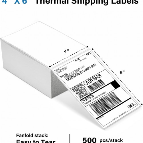 - 500 Labels Per Stack – Each pack includes 500 fan-folded thermal labels, ideal for high-volume printing without the need for frequent reloads. Perfect for e-commerce sellers, warehouse operations, or small businesses handling daily shipments.