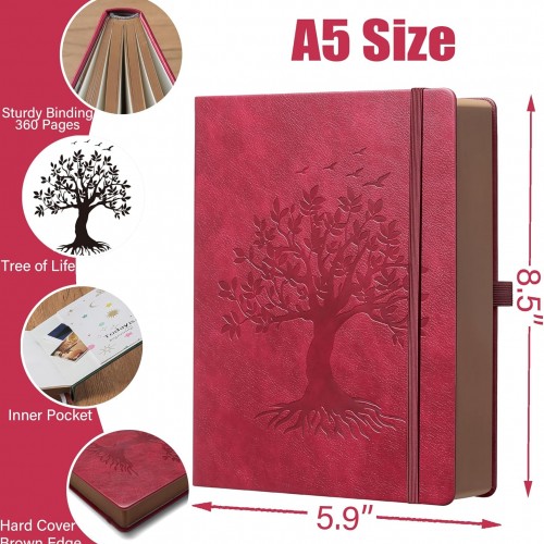 - 360 Pages & 100Gsm Thick Journal: Colorful edge design, with Pen Set, Large B5 size, (7.6″ x 10″/193mm x 254mm), 8mm space classic college ruled notebook, support 180° Lay Flat, 2 bookmarks, 1 elastic closure band, 1 inner pockt.