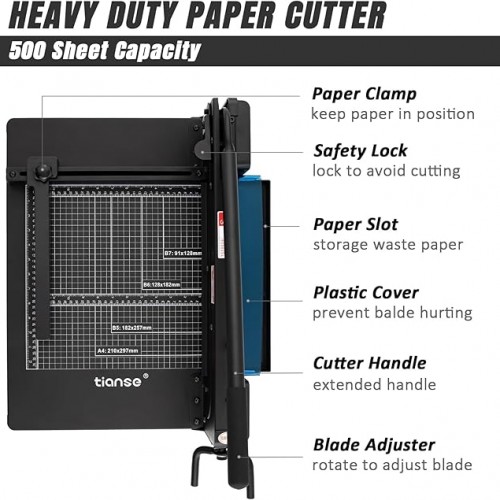 TIANSE Heavy Duty Guillotine Paper Cutter A4 12″ Guillotine Paper Cutter 500 Sheet Capacity Solid Steel Construction with Double Safety Protection Perfect for Trimming Paper Cardstock Matboard Black