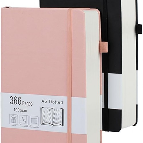 - A5 Hardcover Dotted Journal: The A5 Dot Matrix Notebook is the perfect combination of style and function. With an elasticated pen loop, two ribbon bookmarks, signature page, lanyard, and expandable inner back pocket, making this dot notebook a must-have for anyone looking to stay organized. Jot down your fun facts and thoughts in this special bullet point dot journal.