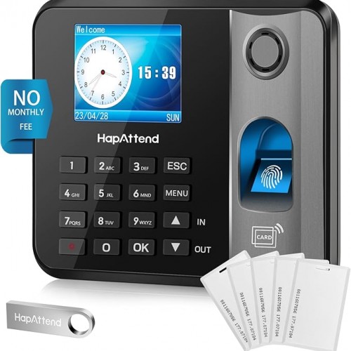 - Standalone & Secure – No Internet Needed: Designed with privacy in mind, the HapAttend time clock is a standalone device that requires no WiFi or network setup—your data stays local and secure via USB transfer.