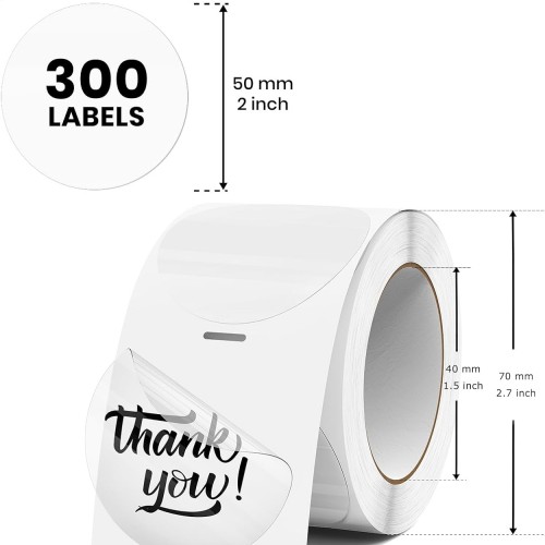 Transparent Thermal Labels Round 2 Inch Self Adhesive Circle Clear Printer Stickers Vinyl Waterproof Roll Decals Name Tag for Address Design DIY Logo Business 300 PCS