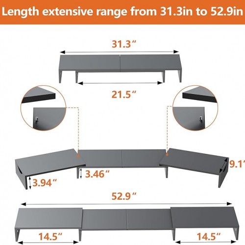 Triple Monitor Stand Riser, Extra Long Monitor Riser for 1~2~3 Monitors, Dual Monitor Stand with Length and Angle Adjustable, 3 Shelf Monitor Stand for Desk
