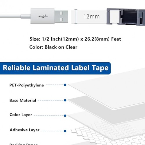- Easy to use: These tz tape 12mm 0.47 laminated clear label tape comes with split backing design, the backing tape is split lengthwise in the middle for easy peeling, and all of Labelwell TZe TZ Tapes with the feature of water resistant, temperature resistant, fade resistant, oil resistant, abrasion resistant, chemical resistant, and no sticky residue