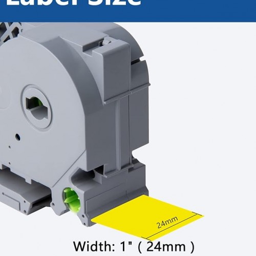- Size – 0.94″ width x 26.2′ length ( 24mm x 8m ) each 24mm label maker tape. Color – Black ink on yellow tape