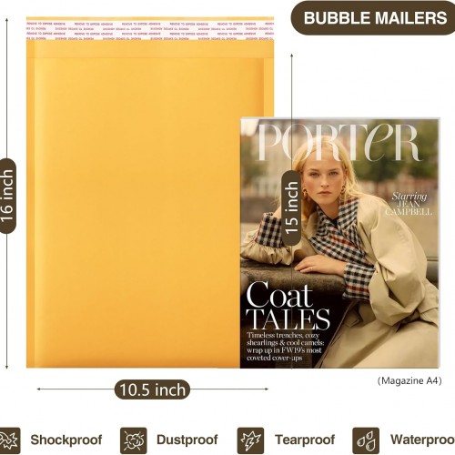 UCGOU Kraft Bubble Mailers 10.5×16 Inch 25 Pack Usable Size 10.5×15 Yellow Padded Envelopes #5 Large Mailing Packages Self Sealing Tear Resistant Boutique Bulk Mail Shipping Bags for Book and More