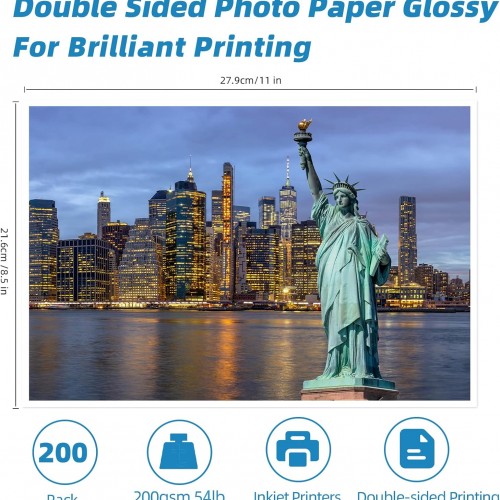 - INKJET PRINTER ONLY: White glossy finish, Double sided glossy brochure inkjet photo paper, 200 sheets a pack , No smudging, No smearing, ONLY compatible with Inkjet Printer and Dye Ink