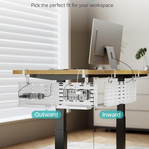 Under Desk Cable Management Tray, 30.2″ Vertical Metal Pegboard Organizer for Power Strip, Cables, Clamp On Cord Organizer Rack with Hooks, Trays & Cable Straps for Home Office, White