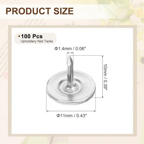 - [Size & Quantity] – The package comes with 100pcs decorative upholstery tacks. Sufficient quantity to meet your different daily needs. The overall size of upholstery nails is about 11mm x 10mm/0.43-inch x 0.39-inch(D*H)