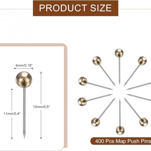 uxcell 400 Pcs Push Pins, Map Thumb Tacks 4mm Round Head Decorative Push Pins for Bulletin Board Home Office Travel Wall DIY Crafts Map Photo, Golden