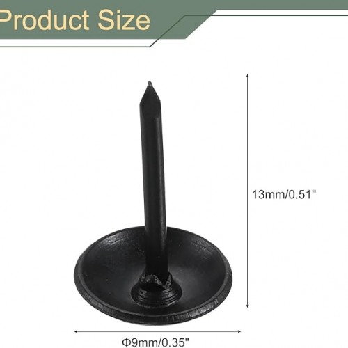 - What You Get – The package comes with 50 pieces of upholstery tacks, with the total height is 13mm/0.51inch, the head diameter is 9mm/0.35inch.
