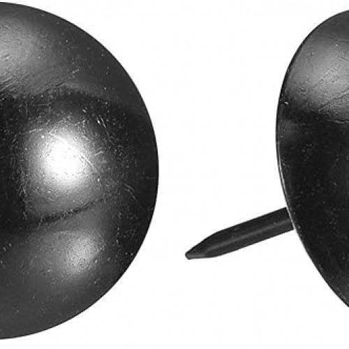 - Specifications: Material: Carbon steel; Color: Black; Diameter of nails head: 11mm/0.44inch; Shank length: 17mm/0.67inch; Package Content: 50Pcs x Upholstery Tacks Nail Pins