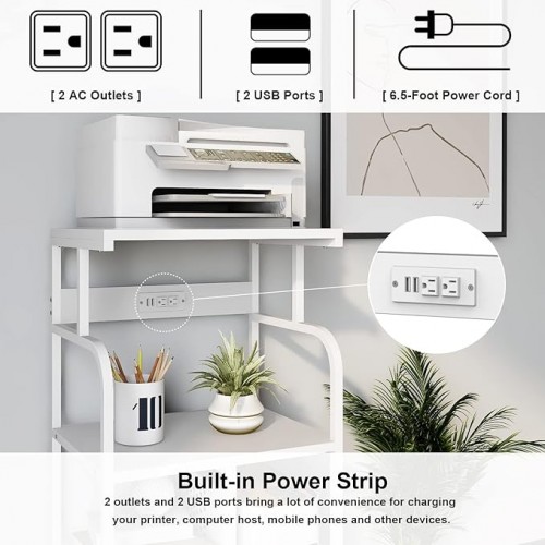 - Upgraded Extensive Design : Our tall printer stand includes built-in USB port plugs power outlet(2 charging port & 2 power sockets),easy for your printer stand, laptop, computer or smartphone charging without additional outlets, which provides convenience while working. Also versatile as a kitchen trolley cart, bar cart, file cabinet, side end table, utility carts, etc