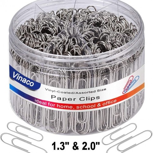 Vinaco Paper Clips Black, 400PCS Medium and Jumbo Paper Clips (1.3 inch & 2.0 inch), Durable & Rustproof, Coated Paperclip Great for Office School and Personal Use(Black)
