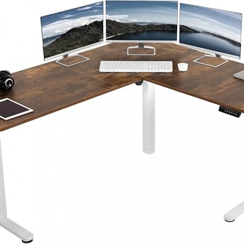 VIVO Electric Corner L-Shaped 75 x 63 in Standing Desk, Memory Height Adjustment, Dark Walnut Top White Frame, DESK-E3CTWD-75