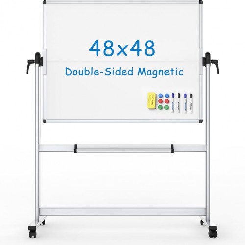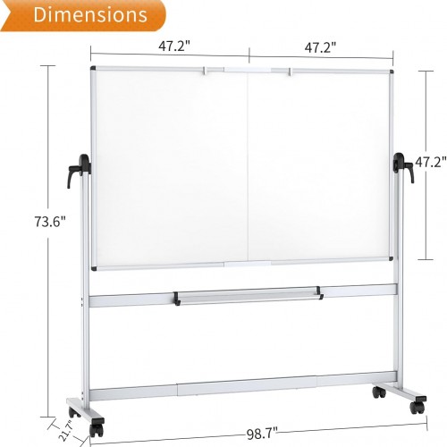 VIZ-PRO Double-Sided Mobile Whiteboard, 96 x 48 Inches, Magnetic Rolling Dry Erase White Board on Wheels with Aluminium Frame and Stand 8′ x 4′