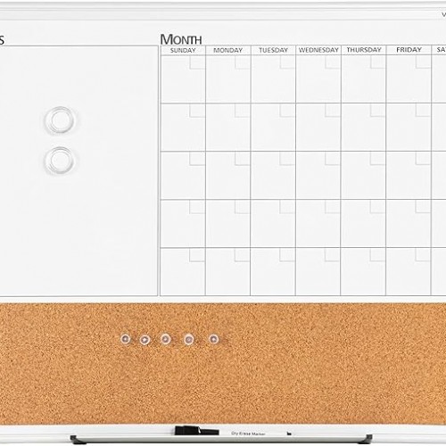 WALGLASS Dry Erase Calendar Whiteboard for Wall, 24″ x 18″ Double-Sided Monthly Calendar White Board with Black Aluminum Frame, Hanging or Wall Mount Dry Erase Whiteboard for Home, Office, School