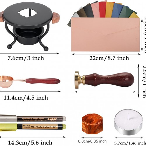 - What You Will Get: This wax seal kit comes with a box of 720 pieces of sealing wax beads in 24 different colors; a wax seal warmer; a wax melting spoon; a handle; a wax stamp with “tree of life”; 12 tea light candles; 10 different color envelopes; and 2 metallic pens; this practical comprehensive set will meet all your wax sealing needs