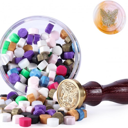Wax Seal Stamp Kits, 6 pcs Wax Stamp Brass Head & 1 Wooden Handle, 6 Rose Designs