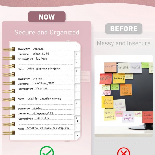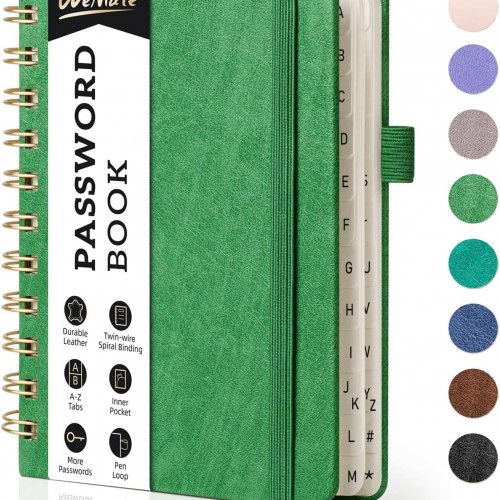 WEMATE Password Book with Alphabetical Tabs, Spiral Password Keeper Book for Seniors, Internet Password Notebook Password Journal Logbook Log in Detail, Small – 4.7”x 6” (Rose Gold)
