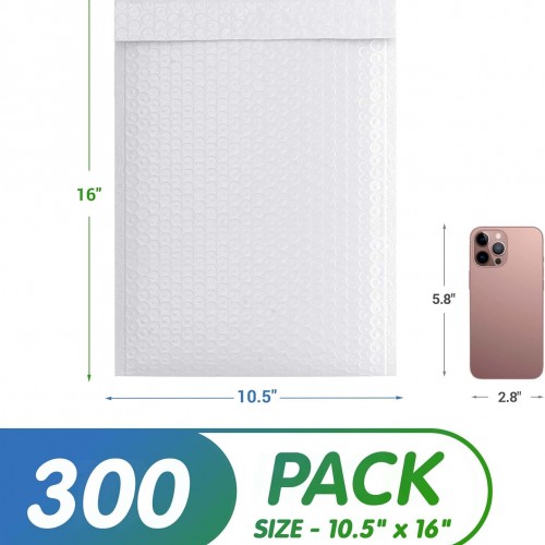 - 300 Pack White Padded Shipping Envelopes, 10.5 x 16 Inches. Discover the ultimate solution in packaging with padded mailing envelopes. Merging elegance with efficiency, spacious design of packaging for small business ensures a perfect fit for a variety of items.