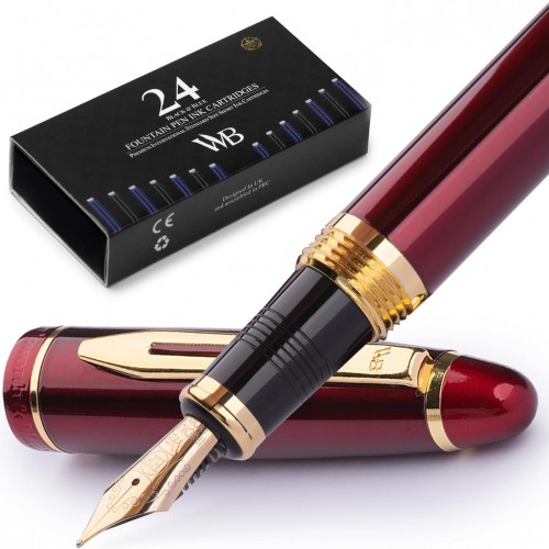 - ✒️DISCOVER THE ALL-INCLUSIVE REFILLABLE FOUNTAIN PEN SET – Includes luxurious fountain pen, ink converter, 24 Pack Ink Cartridges, and a Gift Pouch – ready to be gifted. Each calligraphy ink and fountain pen ink cartridges comes in a plastic re-closable case and will last you at least 2 weeks of regular use. With every order is a complete instruction booklet for your Wordsworth and Black Pen Set. All the information you’ll need to get started using and enjoying your luxurious writing tool!