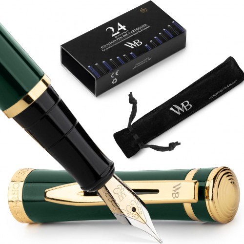 Wordsworth & Black Majesti Fountain Pen-(Blue), Luxury Case, 24K Gold Finish; 18K Gilded Medium Nib- Ink Cartridges, Refillable Ink Converter-Calligraphy Pen-Best Business Gift Set for Men & Women