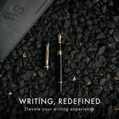 Wordsworth & Black Primori Fountain Pen Set [Black Gold]; Extra Fine Nib, Gift Case, 24 Ink Cartridges, Refill Converter, Manual; Journaling, Calligraphy, Smooth Writing Pens; Left and Right Handed