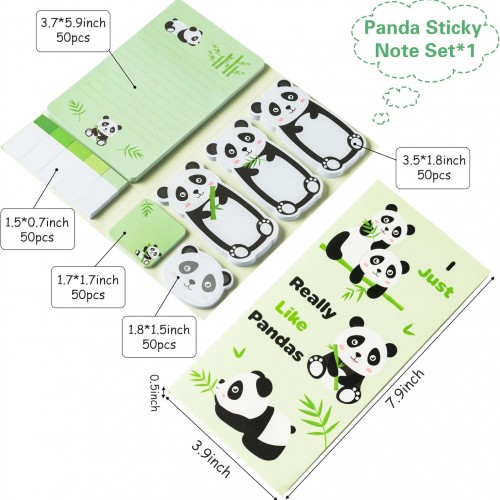 Xqumoi I Just Really Like Pandas Sticky Notes Set, 550 Sheets, Cute Cartoon Pandas Self-Stick Notes Pads Animal Divider Tabs Bundle Writing Memo Pads Back to School Office Supplies Small Gift