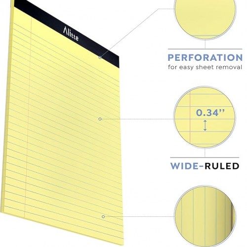 - Easier Writing & Reading – These 8.5 x 11″ yellow legal note pads are wide-ruled, meaning there’s more space between lines. It can easily accommodate larger handwriting, which is much easier to read.