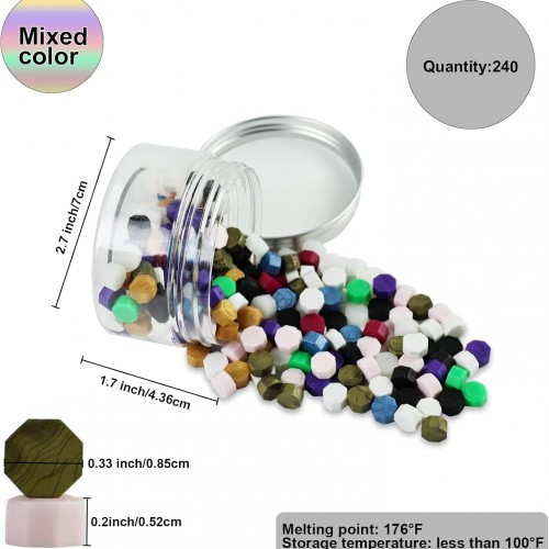 YIPLED 240-Piece Sealing Wax Beads Kit with Butterfly Wax Seal Stamp and Storage Can for Invitations, Cards, Envelopes, Gifts, Letters, Crafts (Mixed Color)