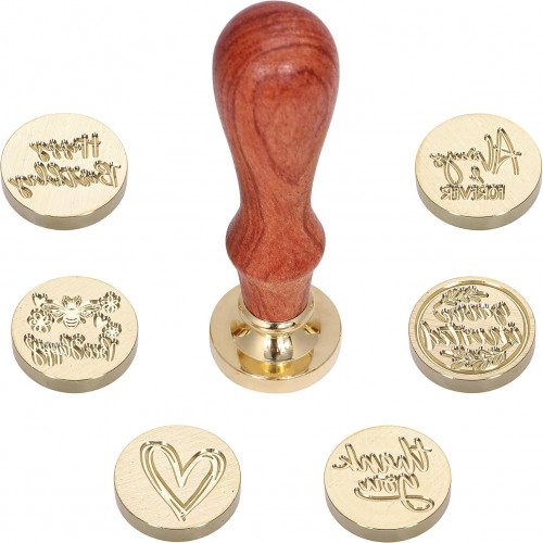 - 【PACKAGE INCLUDED】Yoption phrases wax seal stamp kit includes: 1pcs wax seal stamp handle, 6pcs removable wax seal stamp heads (Happy Birthday, Heart, Thankyou, Bee, You’re Invited, Always & Forever) and a vintage gift box.